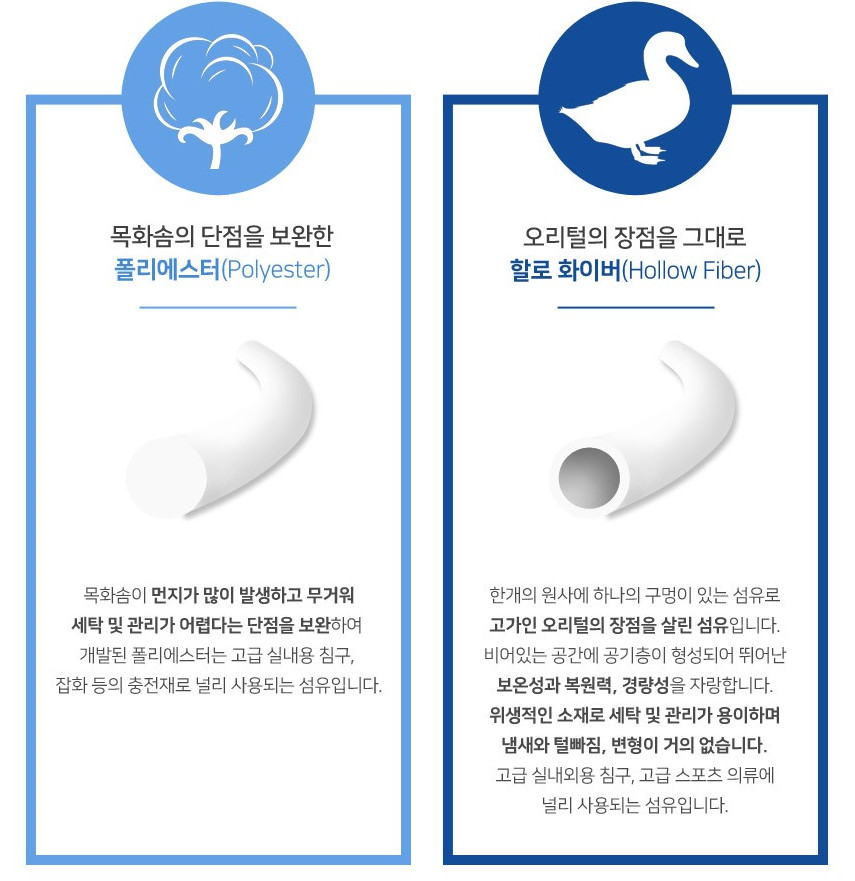 폴리에스터(polyester) 충전재를 사용하여 쿠션감 up, 복원력 up!